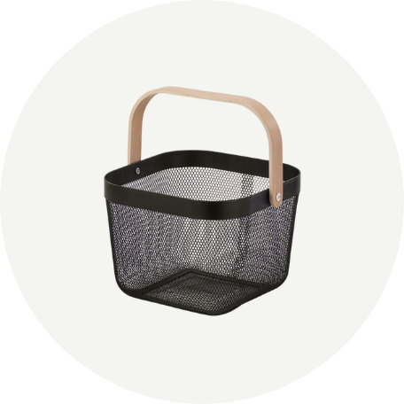 Metal Mesh Basket with Wooden Handle Storage Pantry Organizer Squared