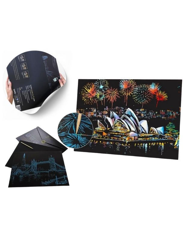 مجموعة A3 من Magic Scratch Art لإضاءة المدينة باستخدام عصا الخيزران