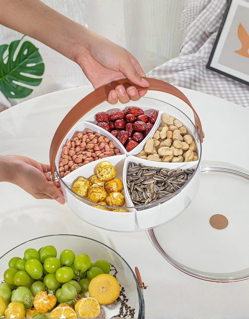 Divided Serving Tray with Lid Handle 5 Compartment Clear Plastic Snack Fruit Platter