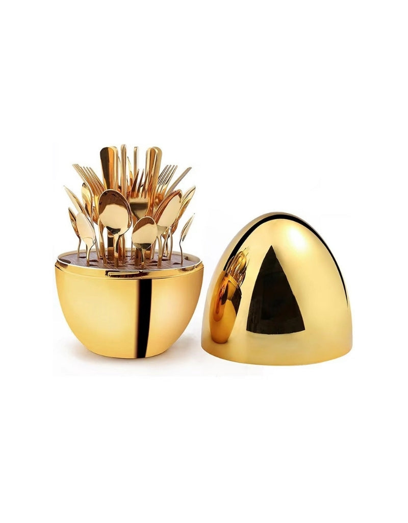 Falari 24 PCS Flatware Set Gold Stainless Steel Tableware Egg Design