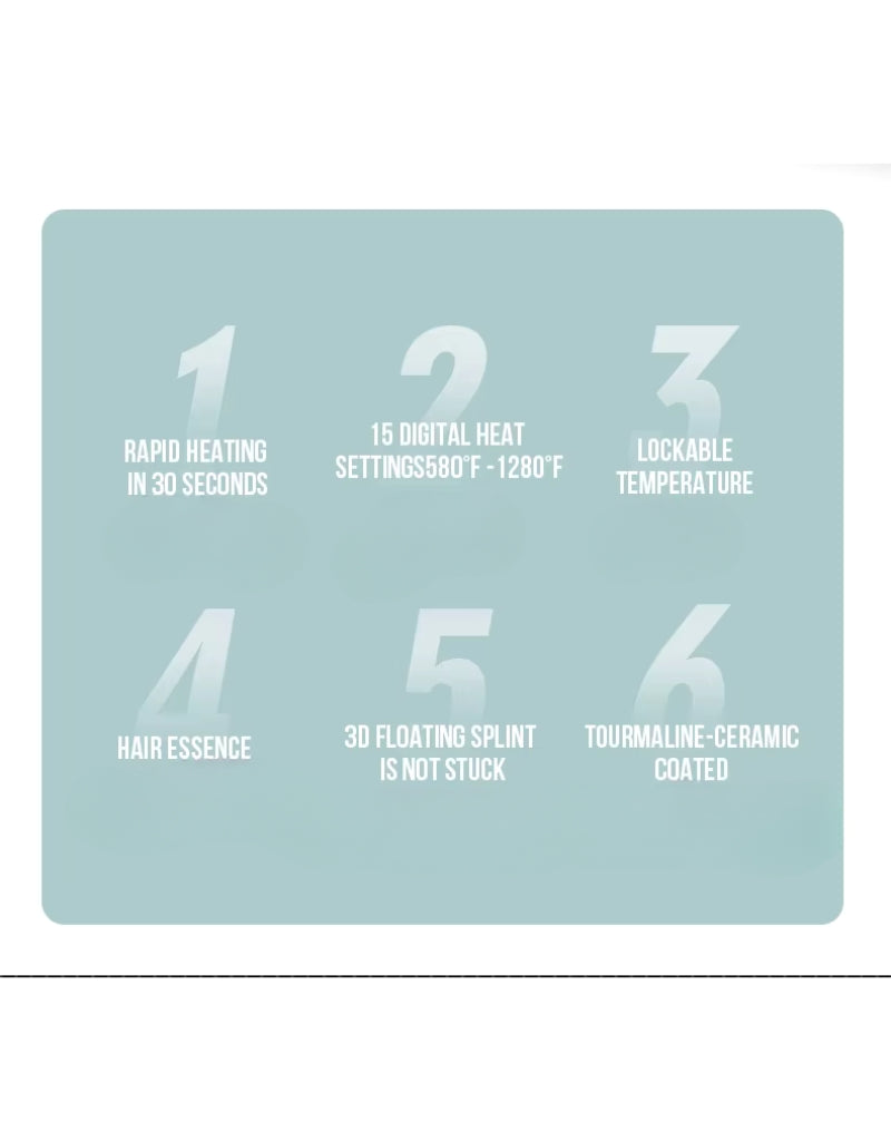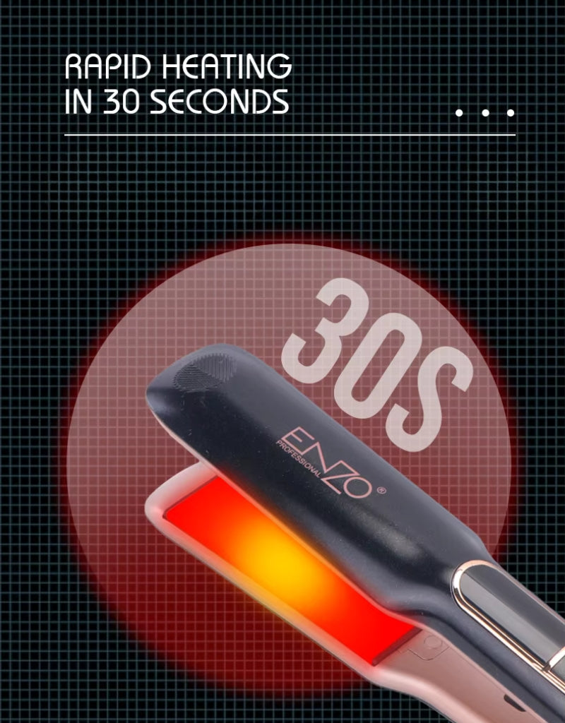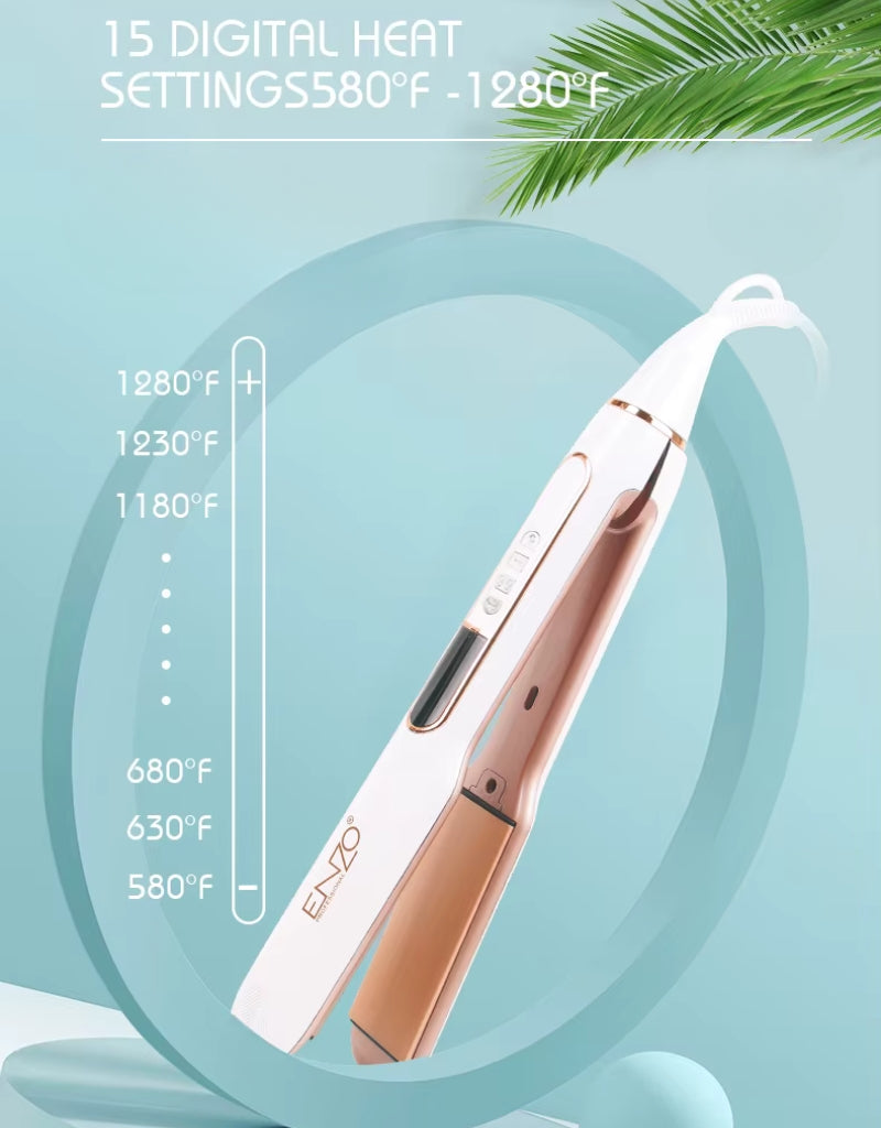 يسخن مكواة فرد الشعر الاحترافية 𝗘𝗻𝘇𝗼 EN-3856 بسرعة تصل إلى 1280 درجة فهرنهايت، وتتميز بألواح سيراميك التورمالين بتقنية الأيونات السالبة لتقليل التجعد وإضافة لمعان. تُقلل ألواحها العريضة وقت التصفيف بنسبة 40%، وتوفر الشاشة الرقمية 15 إعدادًا لدرجة الحرارة لجميع أنواع الشعر. تشمل ميزات الأمان قفلًا لدرجة الحرارة وإيقافًا تلقائيًا بعد 60 دقيقة. تمنع الألواح العائمة ثلاثية الأبعاد تلف الشعر، بينما يُعزز المقبض المانع للانزلاق والسلك الدوار 360 درجة سهولة الاستخدام. تأتي مع شامبو وسيروم مُغذيين سعة 200 مل لإصلاح الشعر التالف عن طريق استعادة الكيراتين والبروتين. تُصفف هذه الأداة متعددة الاستخدامات الشعر الأملس أو المموج بدقة وعناية.