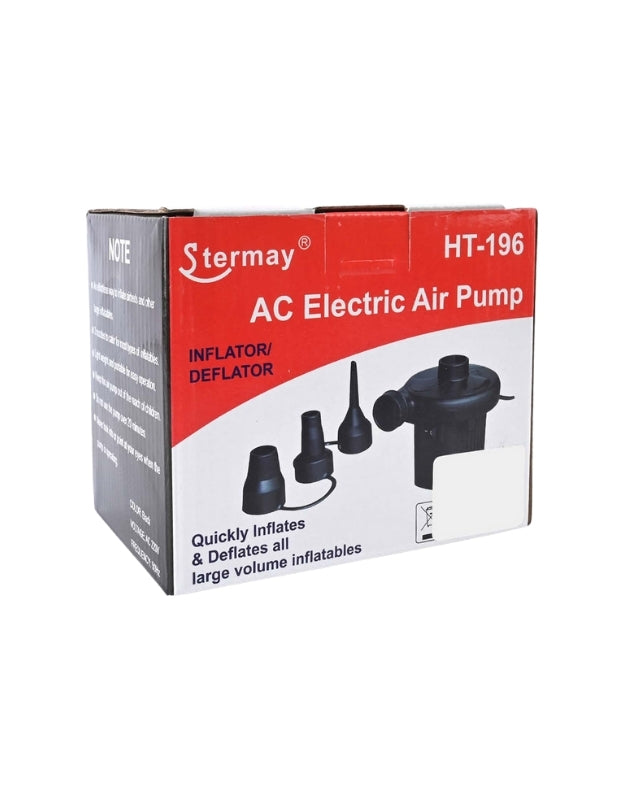 توفر مضخة الهواء الكهربائية AC 327-22 من Stermay حلاً موثوقًا وفعالًا لنفخ مجموعة واسعة من المضخات الهوائية الكبيرة. مزودة بثلاث فوهات قابلة للتبديل، وتتوافق مع أنواع مختلفة من الصمامات، مما يجعلها مثالية للأسرّة الهوائية، والمسابح القابلة للنفخ، والأرائك، والطوافات، وغيرها. يضمن تصميمها المدمج وخفيف الوزن سهولة الحمل والتشغيل المريح أينما احتجت إليها. تعمل هذه المضخة بتيار متردد، مما يوفر لك النفخ والتفريغ السريعين، مما يوفر لك الوقت والجهد. حرصًا على سلامتك، تجنب الاستخدام المتواصل لأكثر من 20 دقيقة، واحفظها بعيدًا عن متناول الأطفال. تُعد هذه المضخة أداة عملية لمهام النفخ السهلة في جميع أنحاء المنزل.