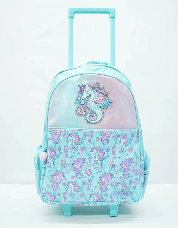 حقيبة ظهر سماجل سي هورس-يونيكورن بعجلات مزودة بإضاءة لمزيد من الرؤية والمتعة. صُممت لراحة لا مثيل لها، حيث تجمع بين تصميمها الأنيق وسهولة حملها العملية، مما يجعلها خيارًا مثاليًا للطلاب أو المسافرين الذين يبحثون عن وسيلة حمل فريدة وعملية.