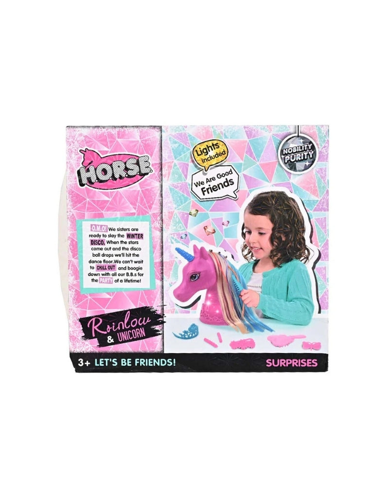 - Includes: mannequin head, comb, hairpins, tiara, and a small surprise in the form of a toy figure