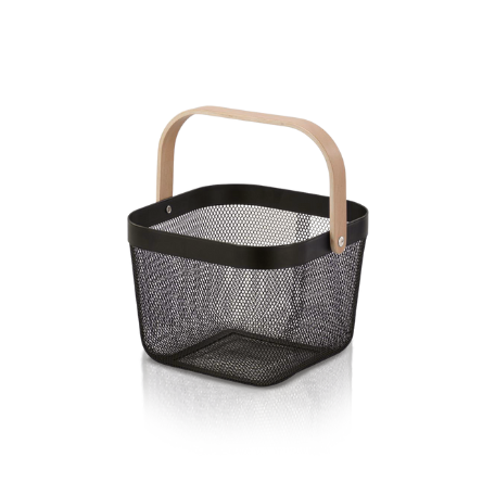 Metal Mesh Basket with Wooden Handle Storage Pantry Organizer Squared